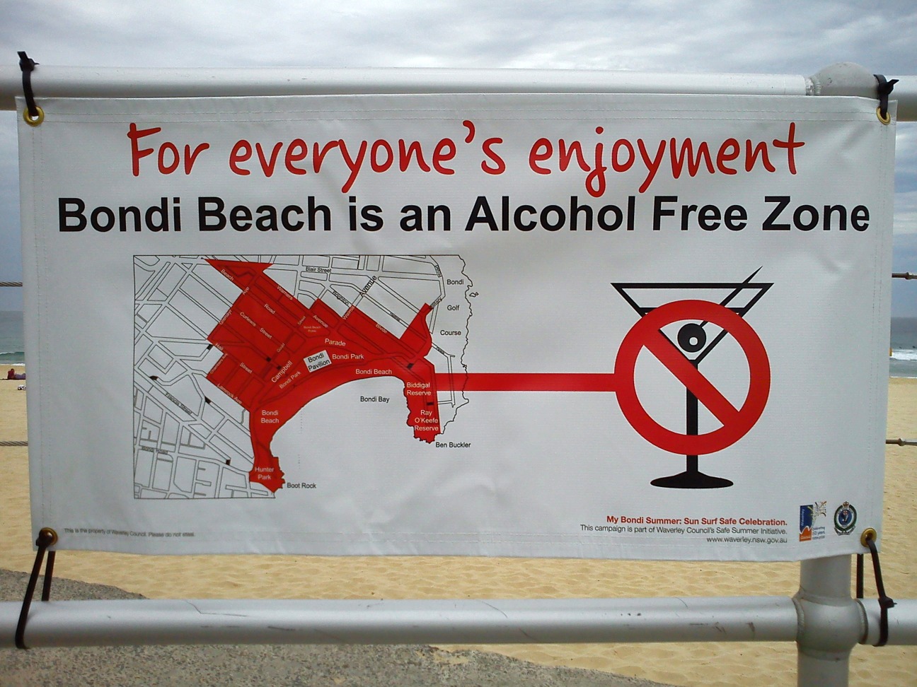 Bondi beach alcohol free zone. Bondi in new south wales australia established an alcohol free zone in the city in 2004 in efforts to reduce assaults and antisocial behavior influenced by street drinking. I did the same for south australia lots of beaches are dry zones meaning alcohol is not allowed including henley and glenelg. Alcohol free zones alcohol prohibited areas.