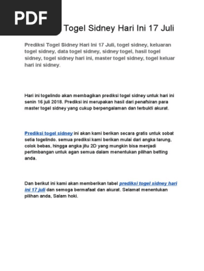 Prediksi Togel Sidney Hari Ini 17 Juli