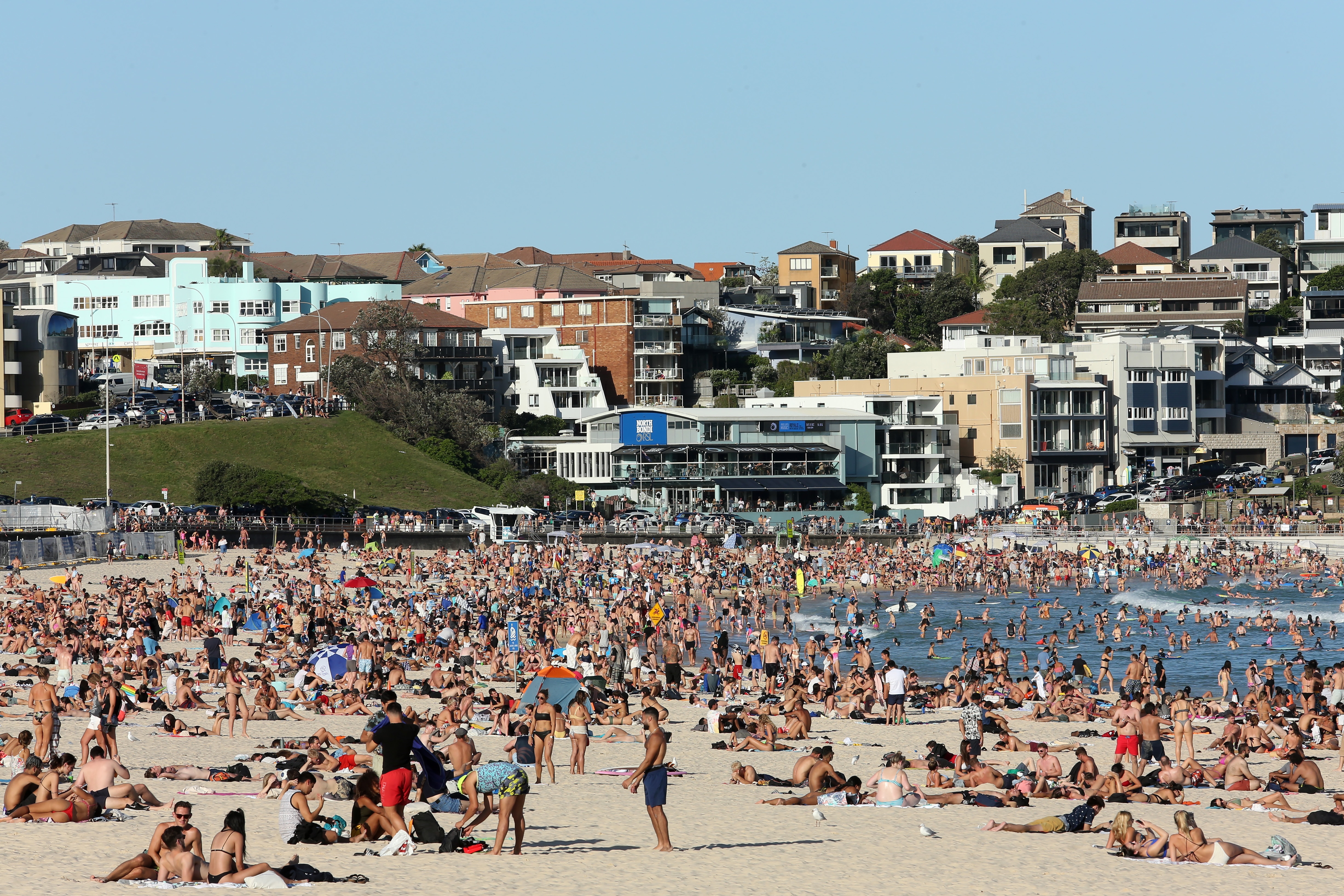 Professional lifeguards patrol bondi beach 365 days a year. Its got so much to offer from bright blue waters to epic sunrises cafes and bars coastal walks and of course the beach itself. The beach is part of a large moon shaped bay of white sands and breaking surf.