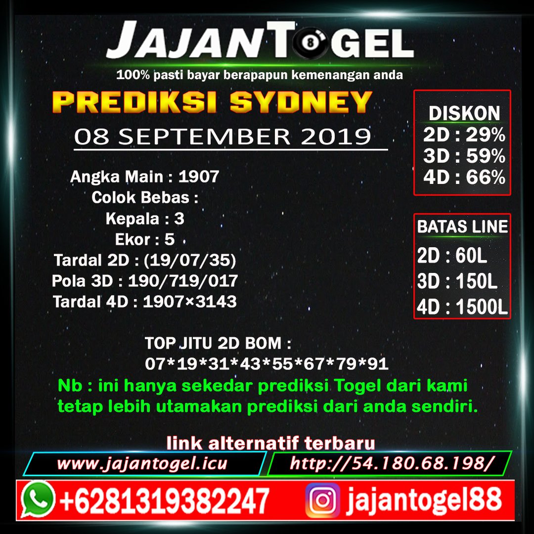 Prediksi Togel Sydney Syd Minggu 08 September 2019 Https T Co Xfdpwcknv5 Bocorantogel Togelonline Prediksitogel Togel Agentogel Agentogelonline Bandartogel Bandartogelonline Juditogel Prediksihk Prediksisgp Prediksisydney Jajantogel