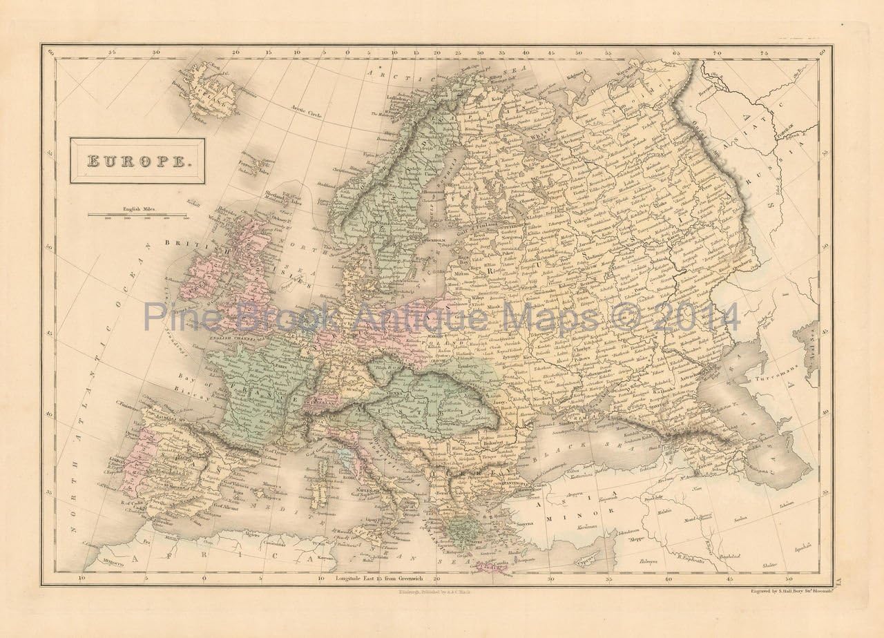 Europe Antique Map Black 1851 Original European Decor History Ancestry Gift Ideas At Amazon S Entertainment Collectibles Store