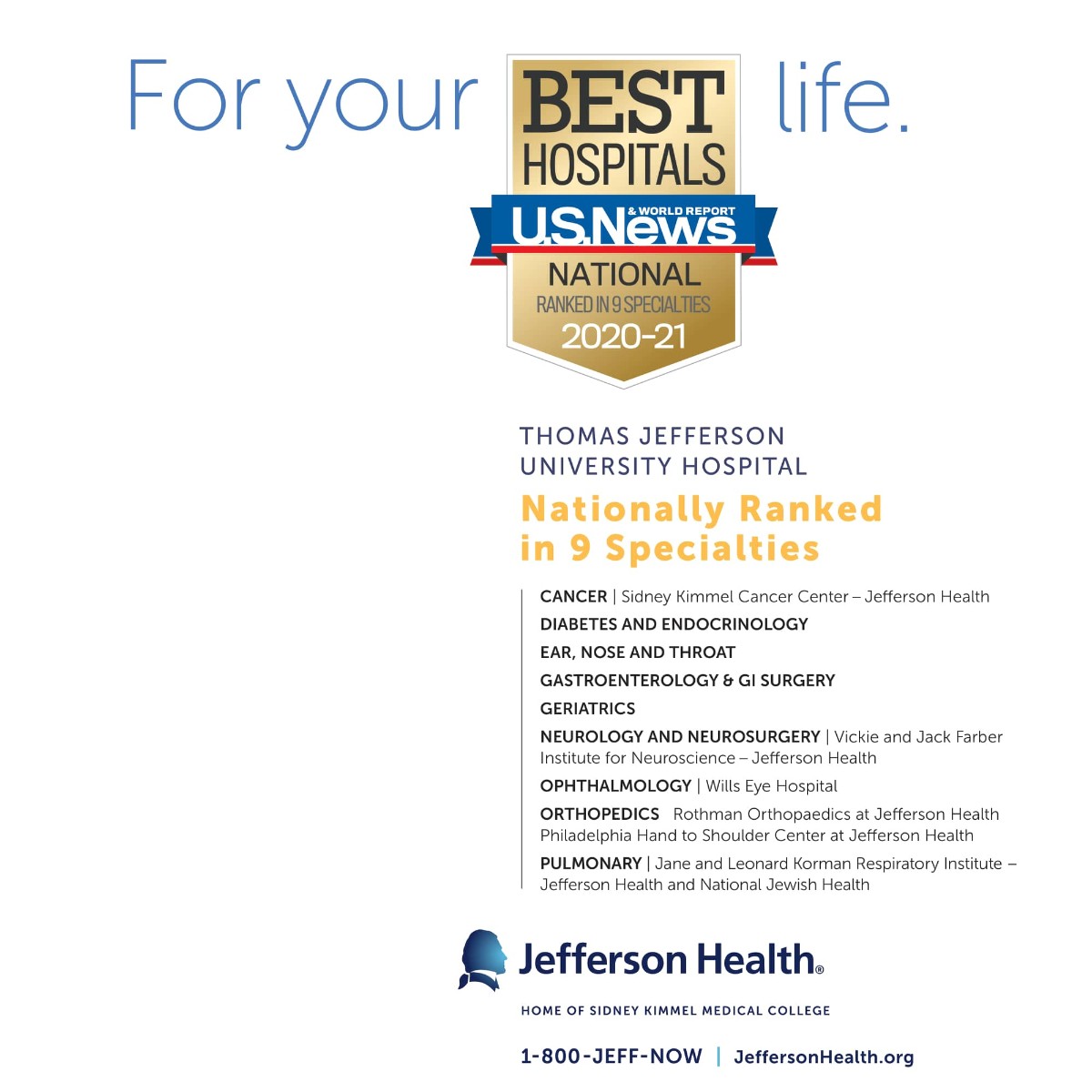 Jefferson Health Hospitals Among Nation S Best According To U S News World Report Rankings Jefferson Health New Jersey