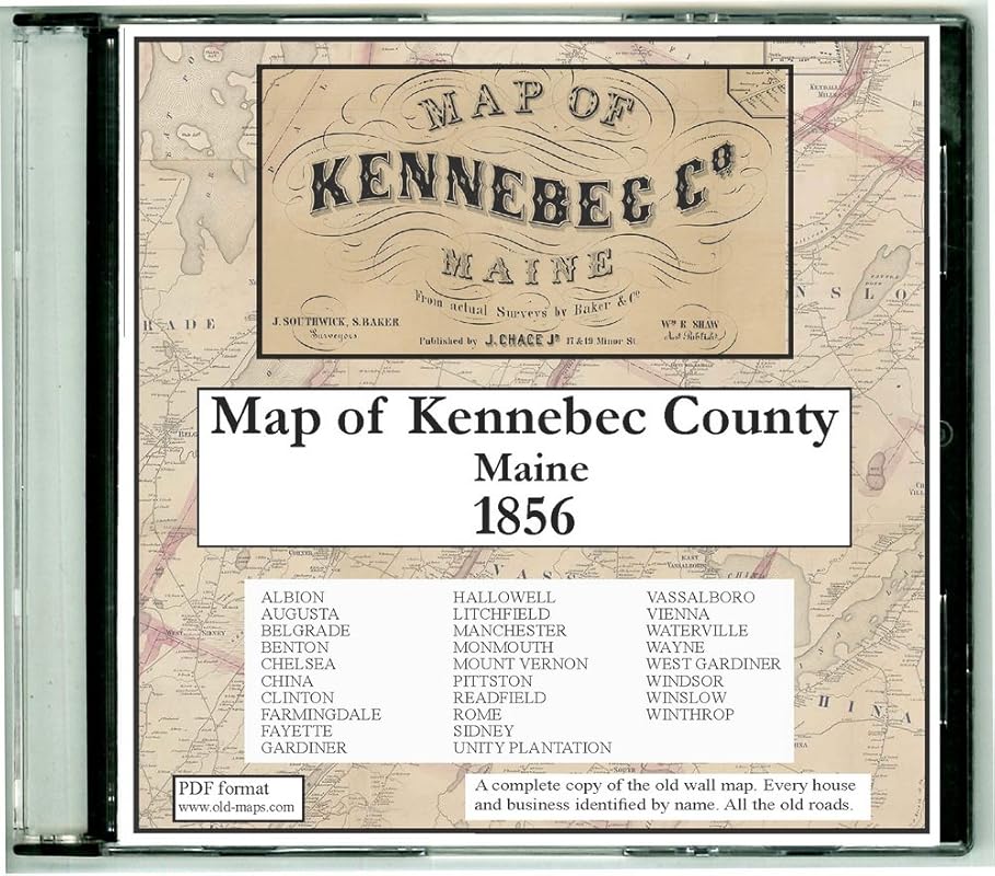 Amazon Com Map Of Kennebec County Maine On Cdrom 1856 With Homeowner Names Old Roads Place Names Great For Genealogy Pdf Format Handmade
