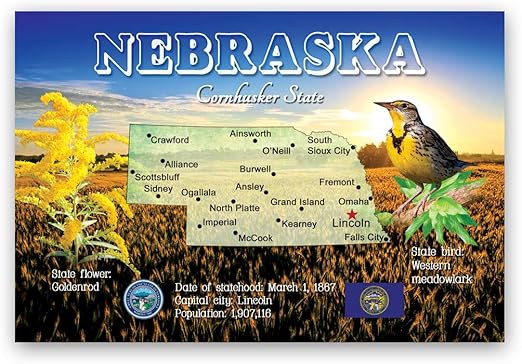 Amazon Com Nebraska Map Postcard Set Of 20 Identical Postcards Ne State Map Post Cards Made In Usa Office Products