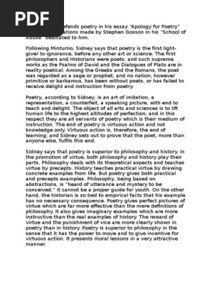 English Literature And Linguistics Academy Sydney S Definition Of Poetry And Its Superiority Over Philosophy History Philip Sidney Defends Poetry In His Essay Apology For Poetry From The Accusations Made By